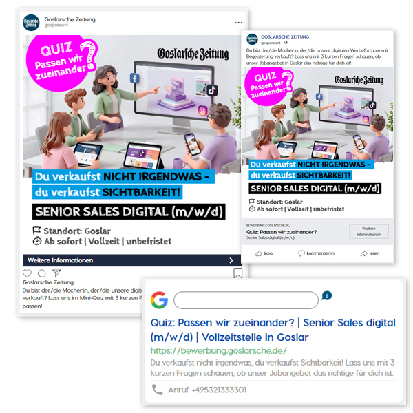- Platzierung auf Facebook, Instagram und in den Google-Suchergebnissen möglich